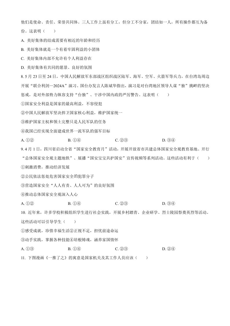 2024年四川省乐山市中考道德与法治真题(空白卷)_共6页