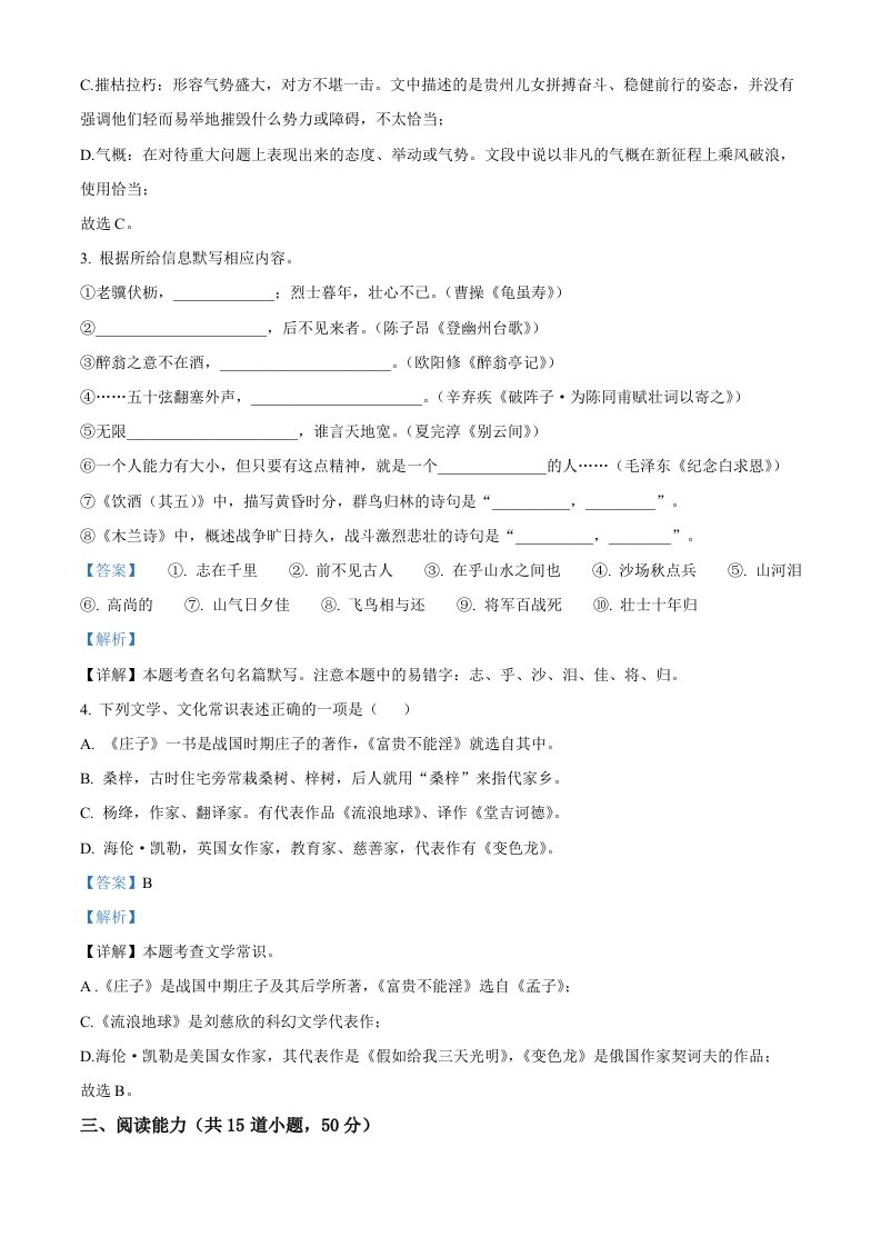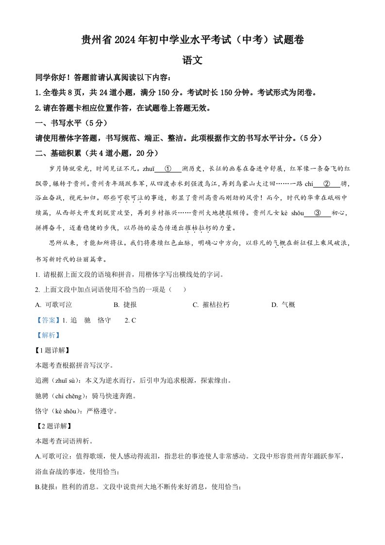 2024年贵州省中考语文真题(含答案)_共19页
