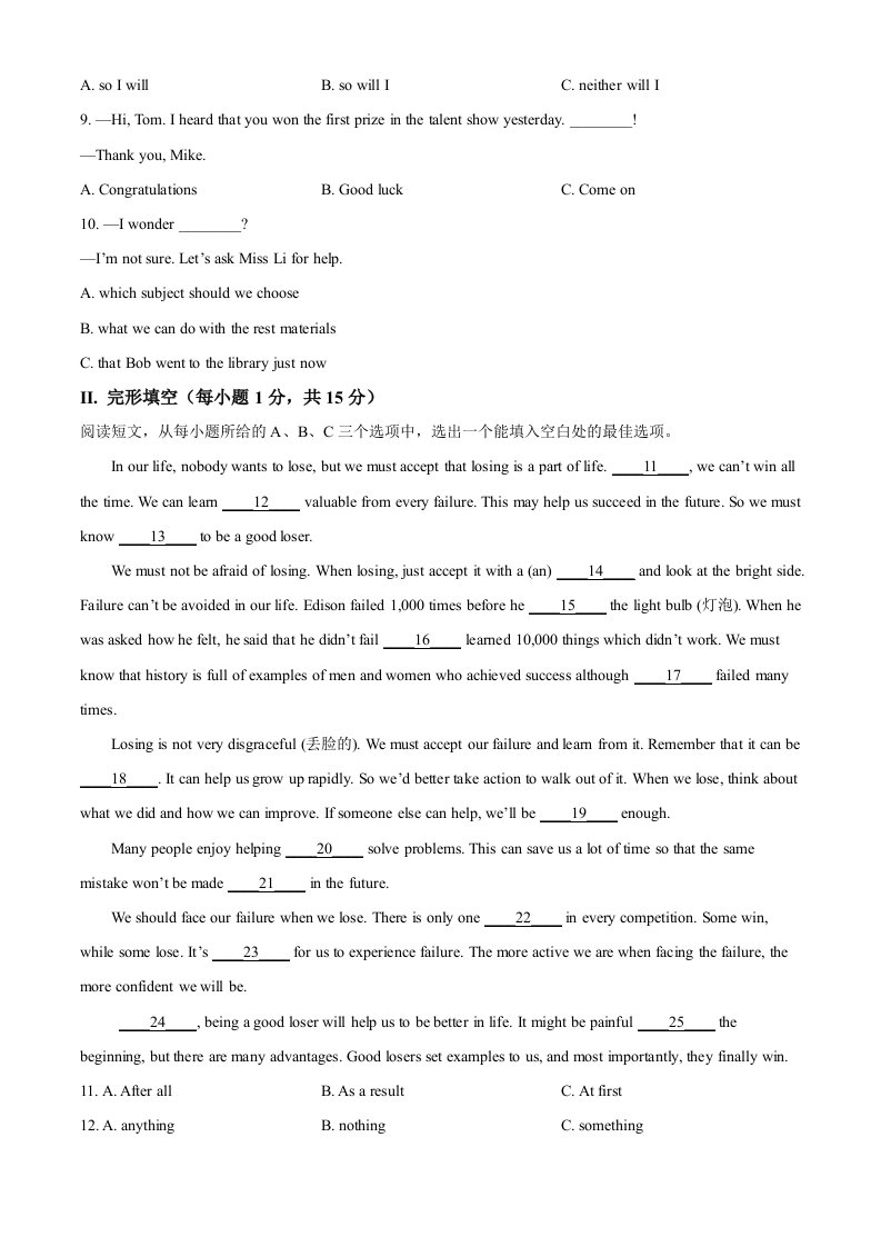 当前位置: 首页初中资源中考真题正文 2024年黑龙江省齐齐哈尔市中考英语真题(空白卷)_共11页 中考真题 2 周前 0 0 10 以上为部分内容预览,如需源文档请登录您的会员账号进行下载! 声明:本站所有文章,如无特殊说明或标注,均为本站原创发布。任何个人或组织,在未征得本站同意时,禁止复制、盗用、采集、发布本站内容到任何网站、书籍等各类媒体平台。如若本站内容侵犯了原著者的合法权益,可联系我们进行处理。 尚学资源永久会员 打赏 收藏 海报 链接