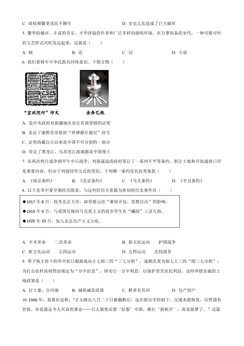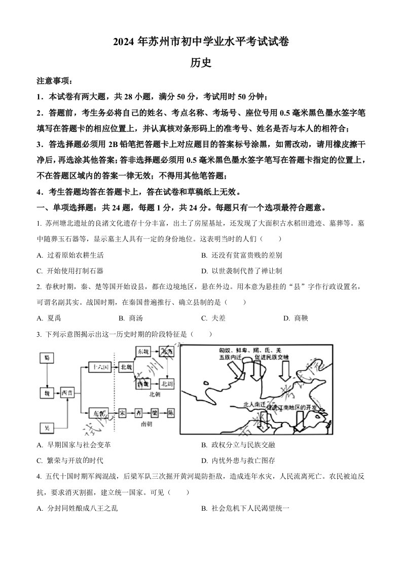 2024年江苏省苏州市中考历史试题(空白卷)_共8页