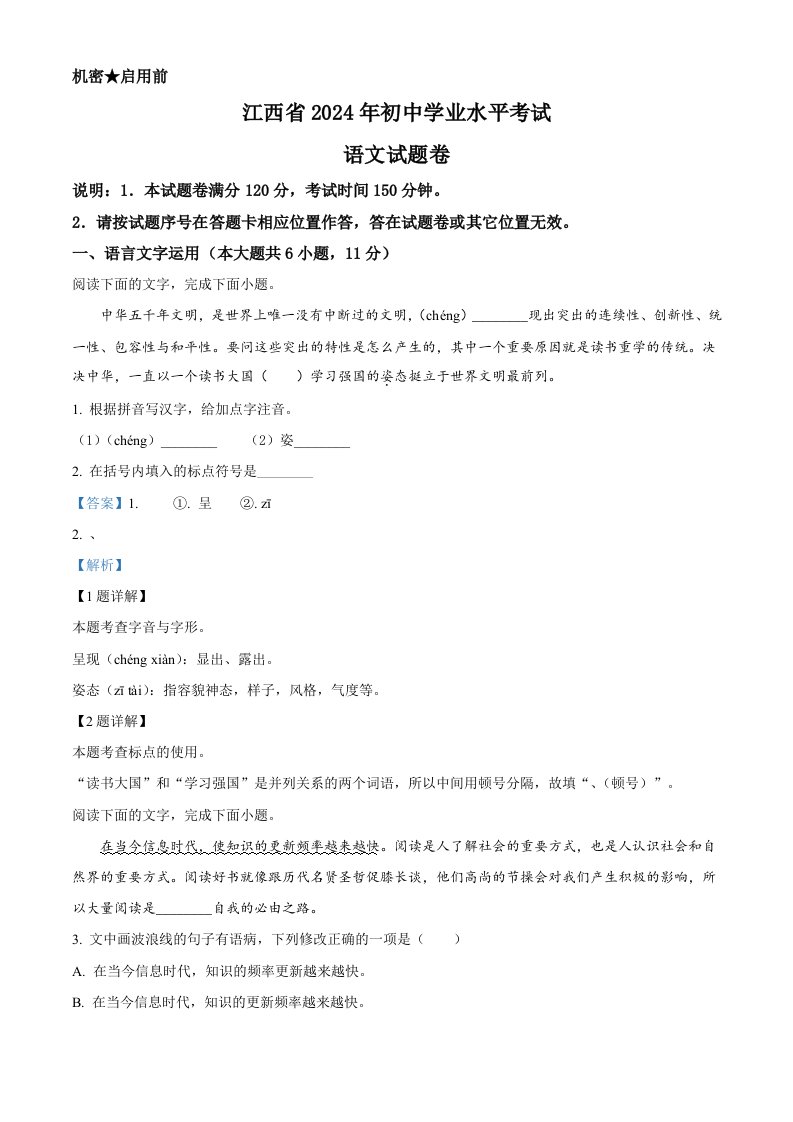当前位置: 首页初中资源中考真题正文 2024年江西省中考语文试题(含答案)_共21页 中考真题 2 周前 0 0 15 以上为部分内容预览,如需源文档请登录您的会员账号进行下载! 声明:本站所有文章,如无特殊说明或标注,均为本站原创发布。任何个人或组织,在未征得本站同意时,禁止复制、盗用、采集、发布本站内容到任何网站、书籍等各类媒体平台。如若本站内容侵犯了原著者的合法权益,可联系我们进行处理。 尚学资源永久会员 打赏 收藏 海报 链接