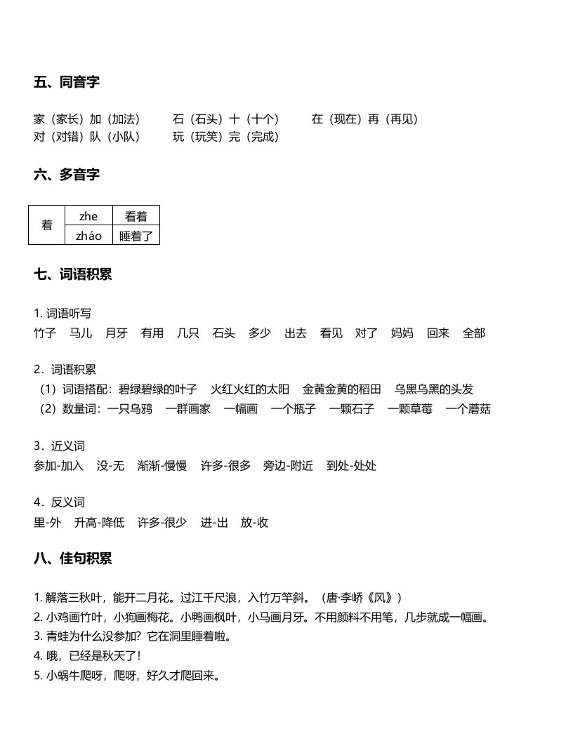 一年级语文上册-第8单元重难点知识总结(部编版)_共2页