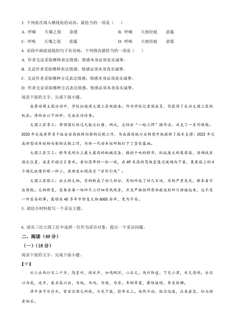 当前位置: 首页初中资源中考真题正文 2024年广东省中考语文试卷(空白卷)_共7页 中考真题 2 周前 0 0 5 以上为部分内容预览,如需源文档请登录您的会员账号进行下载! 声明:本站所有文章,如无特殊说明或标注,均为本站原创发布。任何个人或组织,在未征得本站同意时,禁止复制、盗用、采集、发布本站内容到任何网站、书籍等各类媒体平台。如若本站内容侵犯了原著者的合法权益,可联系我们进行处理。 尚学资源永久会员 打赏 收藏 海报 链接