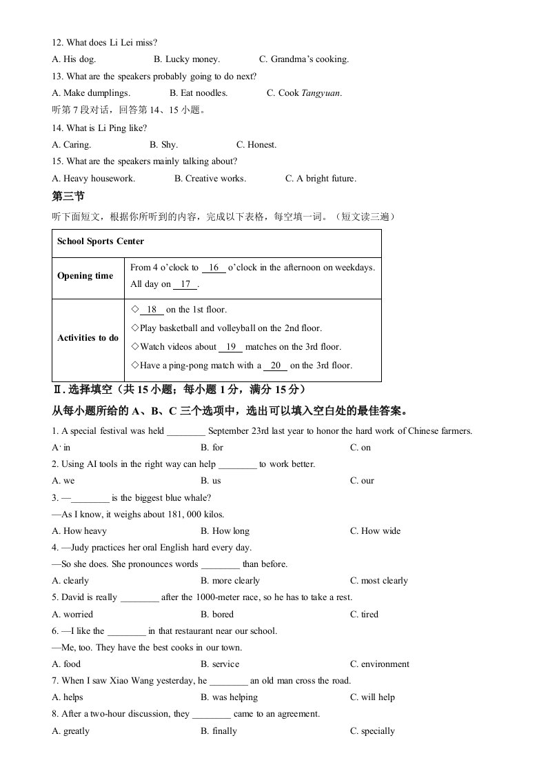 当前位置: 首页初中资源中考真题正文 2024年福建省中考英语真题(空白卷)_共10页 中考真题 2 周前 0 0 5 以上为部分内容预览,如需源文档请登录您的会员账号进行下载! 声明:本站所有文章,如无特殊说明或标注,均为本站原创发布。任何个人或组织,在未征得本站同意时,禁止复制、盗用、采集、发布本站内容到任何网站、书籍等各类媒体平台。如若本站内容侵犯了原著者的合法权益,可联系我们进行处理。 尚学资源永久会员 打赏 收藏 海报 链接