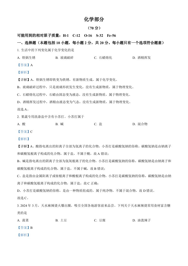 当前位置: 首页初中资源中考真题正文 2024年甘肃省中考化学真题(含答案)_共15页 中考真题 2 周前 0 0 10 以上为部分内容预览,如需源文档请登录您的会员账号进行下载! 声明:本站所有文章,如无特殊说明或标注,均为本站原创发布。任何个人或组织,在未征得本站同意时,禁止复制、盗用、采集、发布本站内容到任何网站、书籍等各类媒体平台。如若本站内容侵犯了原著者的合法权益,可联系我们进行处理。 尚学资源永久会员 打赏 收藏 海报 链接