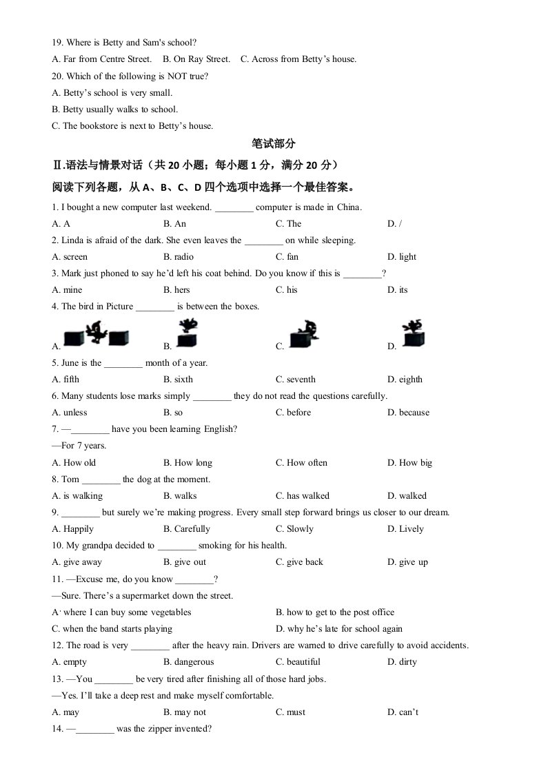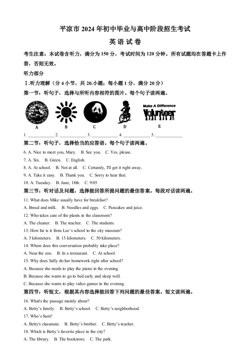 当前位置: 首页初中资源中考真题正文 2024年甘肃省平凉市中考英语真题(空白卷)_共9页 中考真题 2 周前 0 0 5 以上为部分内容预览,如需源文档请登录您的会员账号进行下载! 声明:本站所有文章,如无特殊说明或标注,均为本站原创发布。任何个人或组织,在未征得本站同意时,禁止复制、盗用、采集、发布本站内容到任何网站、书籍等各类媒体平台。如若本站内容侵犯了原著者的合法权益,可联系我们进行处理。 尚学资源永久会员 打赏 收藏 海报 链接