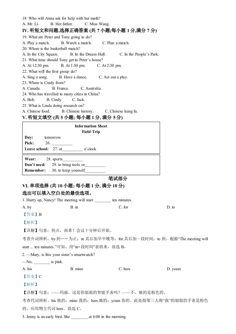 当前位置: 首页初中资源中考真题正文 2024年河北省中考英语真题(含答案)_共15页 中考真题 2 周前 0 0 10 以上为部分内容预览,如需源文档请登录您的会员账号进行下载! 声明:本站所有文章,如无特殊说明或标注,均为本站原创发布。任何个人或组织,在未征得本站同意时,禁止复制、盗用、采集、发布本站内容到任何网站、书籍等各类媒体平台。如若本站内容侵犯了原著者的合法权益,可联系我们进行处理。 尚学资源永久会员 打赏 收藏 海报 链接