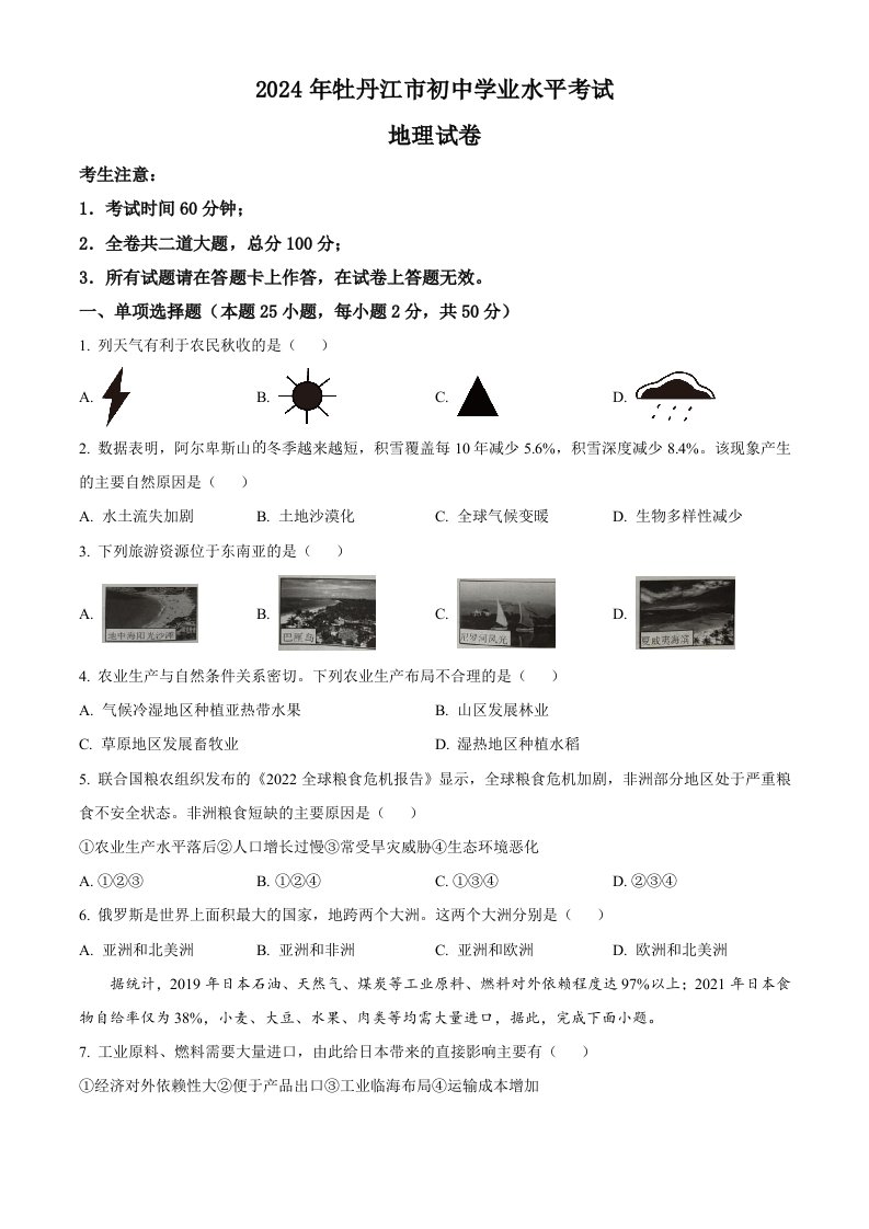 当前位置: 首页初中资源中考真题正文 2024年黑龙江省牡丹江市中考地理试题(空白卷)_共7页 中考真题 2 周前 0 0 5 以上为部分内容预览,如需源文档请登录您的会员账号进行下载! 声明:本站所有文章,如无特殊说明或标注,均为本站原创发布。任何个人或组织,在未征得本站同意时,禁止复制、盗用、采集、发布本站内容到任何网站、书籍等各类媒体平台。如若本站内容侵犯了原著者的合法权益,可联系我们进行处理。 尚学资源永久会员 打赏 收藏 海报 链接