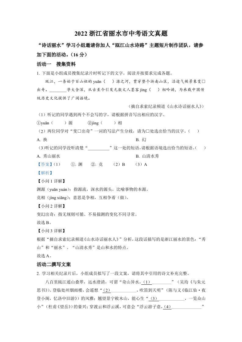 当前位置: 首页初中资源中考真题正文 2022年浙江省丽水市中考语文真题(含答案)_共21页 中考真题 2 周前 0 0 15 以上为部分内容预览,如需源文档请登录您的会员账号进行下载! 声明:本站所有文章,如无特殊说明或标注,均为本站原创发布。任何个人或组织,在未征得本站同意时,禁止复制、盗用、采集、发布本站内容到任何网站、书籍等各类媒体平台。如若本站内容侵犯了原著者的合法权益,可联系我们进行处理。 尚学资源永久会员 打赏 收藏 海报 链接