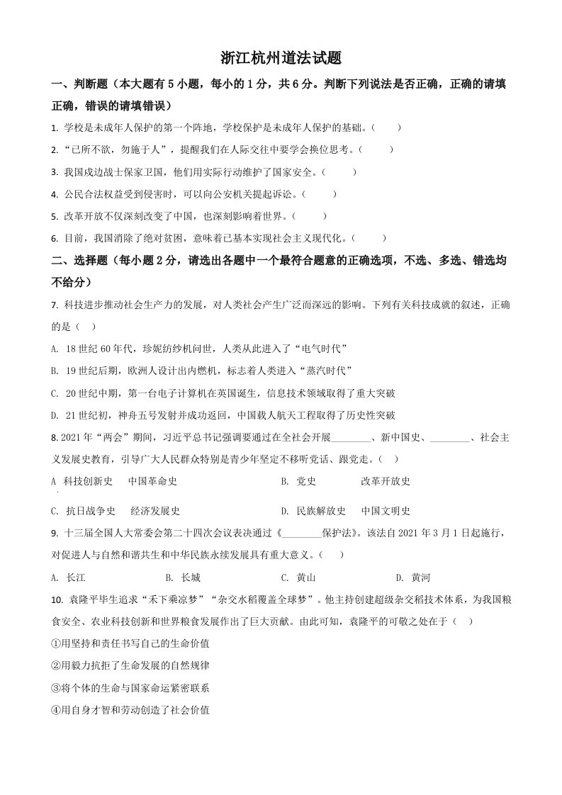 当前位置: 首页初中资源中考真题正文 浙江省杭州市2021年中考道德与法治真题(空白卷)_共5页 中考真题 2 周前 0 0 5 以上为部分内容预览,如需源文档请登录您的会员账号进行下载! 声明:本站所有文章,如无特殊说明或标注,均为本站原创发布。任何个人或组织,在未征得本站同意时,禁止复制、盗用、采集、发布本站内容到任何网站、书籍等各类媒体平台。如若本站内容侵犯了原著者的合法权益,可联系我们进行处理。 尚学资源永久会员 打赏 收藏 海报 链接