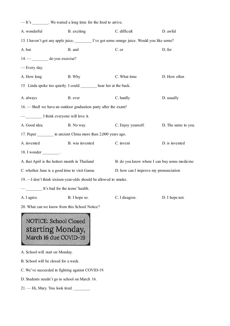 当前位置: 首页初中资源中考真题正文 2022年甘肃省白银市中考英语真题(空白卷)_共13页 中考真题 2 周前 0 0 10 以上为部分内容预览,如需源文档请登录您的会员账号进行下载! 声明:本站所有文章,如无特殊说明或标注,均为本站原创发布。任何个人或组织,在未征得本站同意时,禁止复制、盗用、采集、发布本站内容到任何网站、书籍等各类媒体平台。如若本站内容侵犯了原著者的合法权益,可联系我们进行处理。 尚学资源永久会员 打赏 收藏 海报 链接