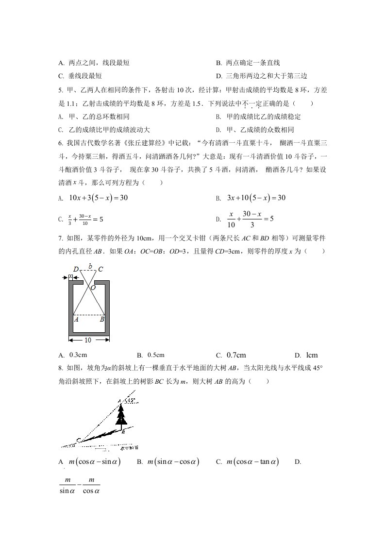 2022年湖北省十堰市中考数学真题(空白卷)_共8页