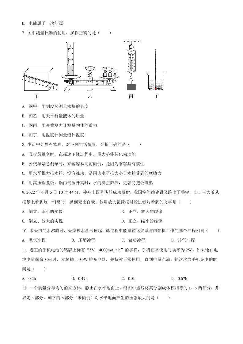 2022年湖南省郴州市中考物理试题(空白卷)_共7页
