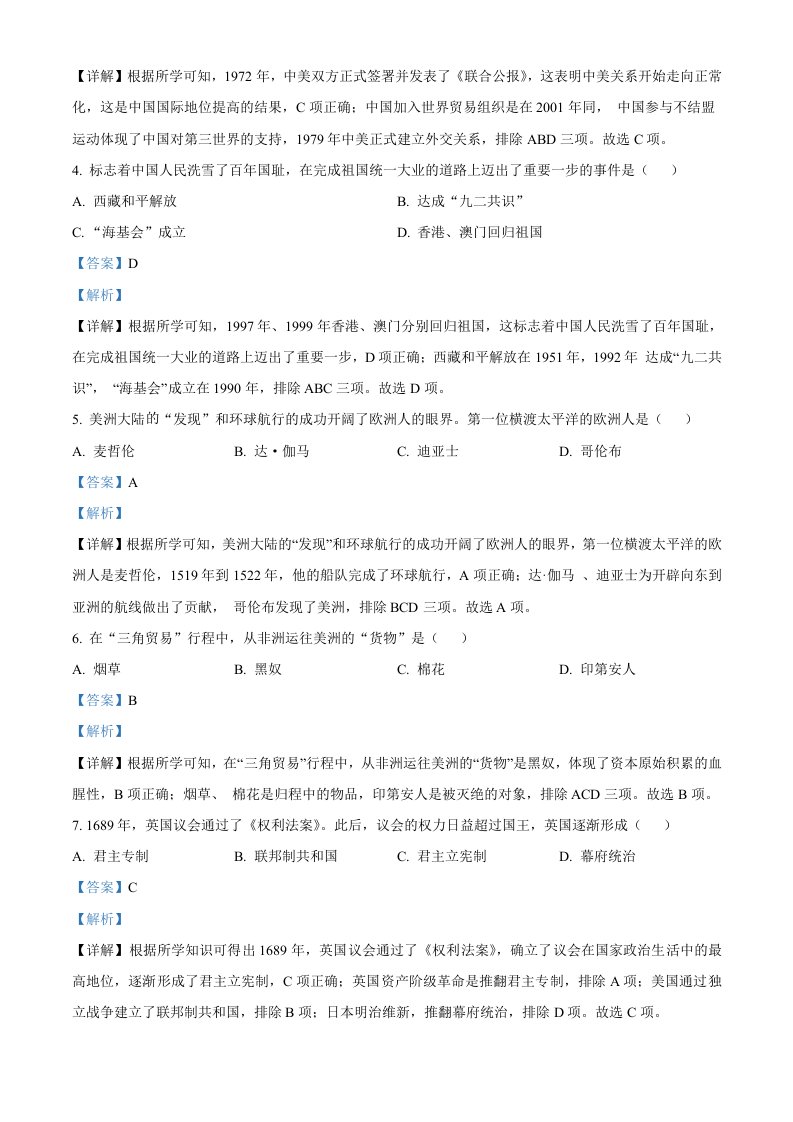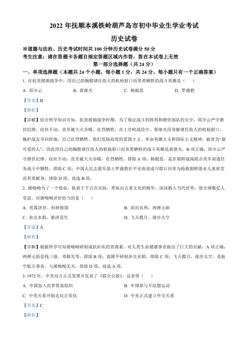 2022年辽宁省抚顺、本溪铁岭、葫芦岛、中考历史真题(含答案)_共12页