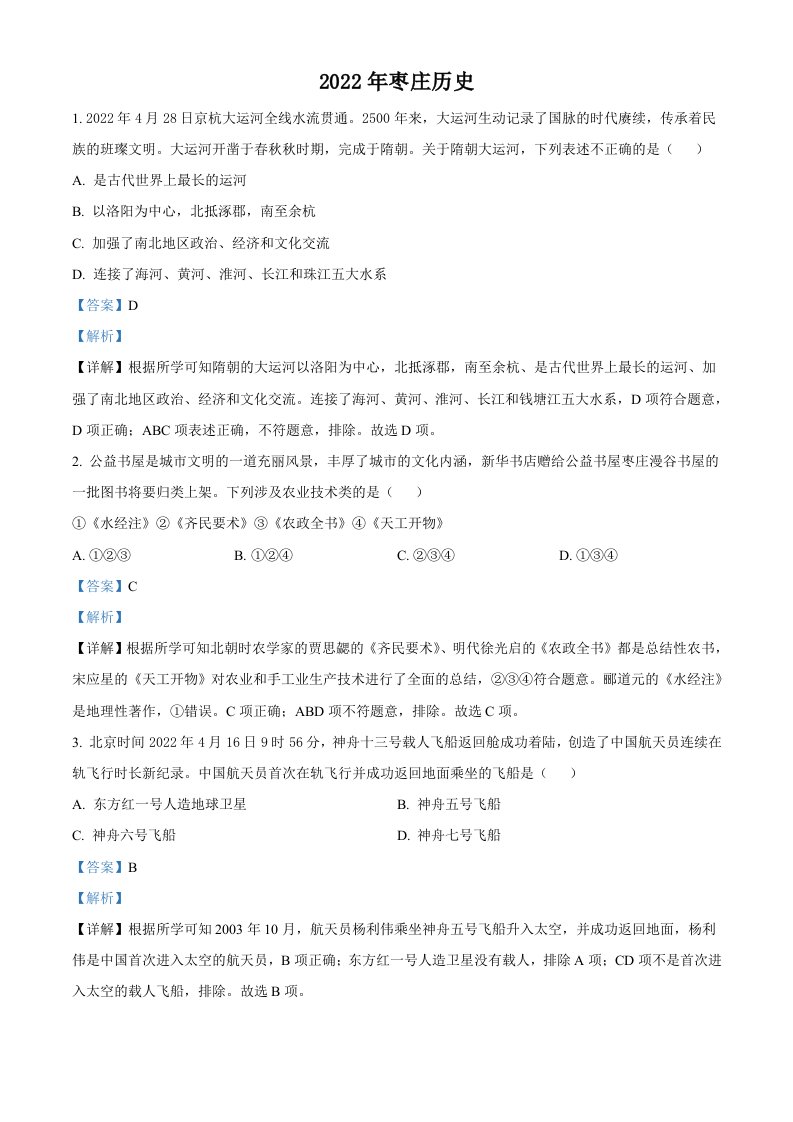 2022年山东省枣庄市中考历史真题(含答案)_共9页