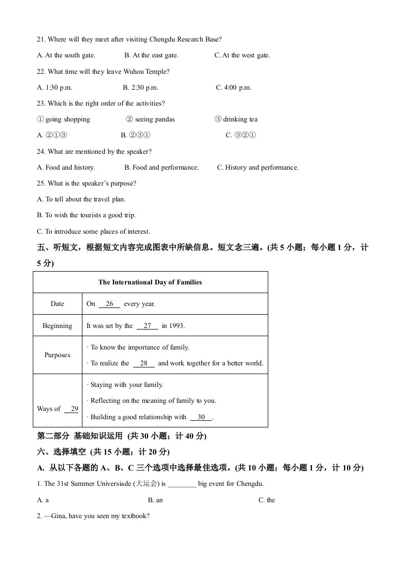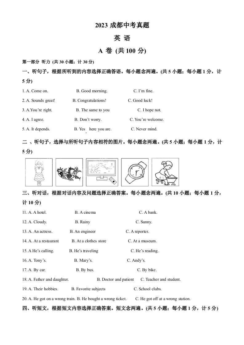 2023年四川省成都中考英语真题(空白卷)_共14页