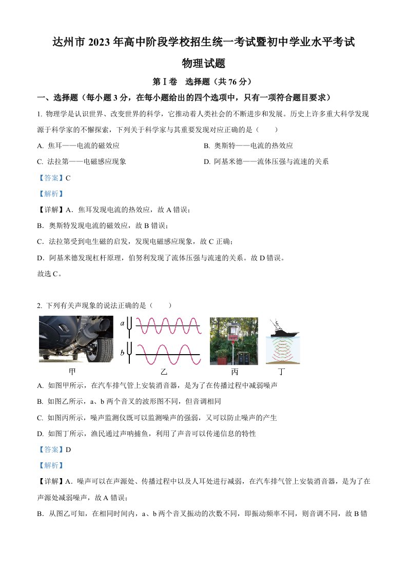 2023年四川省达州市中考理综物理试题(含答案)_共26页