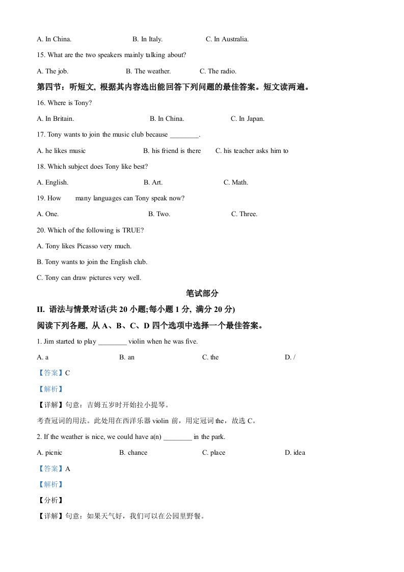 当前位置: 首页初中资源中考真题正文 甘肃省武威市2021年中考英语试题(含答案)_共21页 中考真题 2 周前 0 0 15 以上为部分内容预览,如需源文档请登录您的会员账号进行下载! 声明:本站所有文章,如无特殊说明或标注,均为本站原创发布。任何个人或组织,在未征得本站同意时,禁止复制、盗用、采集、发布本站内容到任何网站、书籍等各类媒体平台。如若本站内容侵犯了原著者的合法权益,可联系我们进行处理。 尚学资源永久会员 打赏 收藏 海报 链接