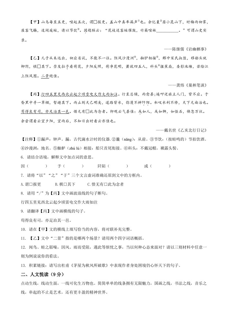 湖北省宜昌市2020年中考语文试题(空白卷)_共9页