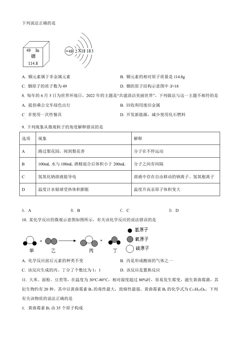2022年湖南省衡阳市中考化学真题(空白卷)_共12页