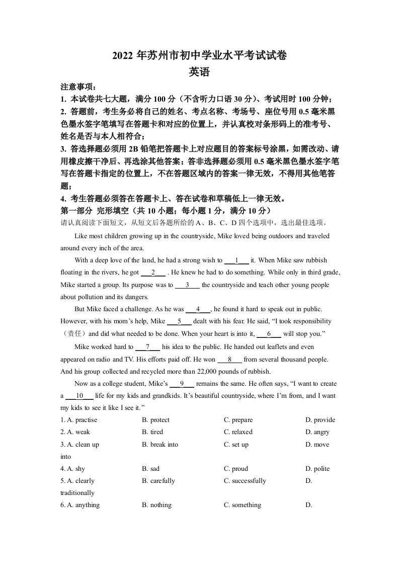 2022年江苏省苏州市中考英语真题(含答案)_共16页