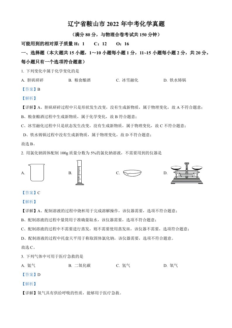 当前位置: 首页初中资源中考真题正文 2022年辽宁省鞍山市中考化学真题(含答案)_共18页 中考真题 2 周前 0 0 10 以上为部分内容预览,如需源文档请登录您的会员账号进行下载! 声明:本站所有文章,如无特殊说明或标注,均为本站原创发布。任何个人或组织,在未征得本站同意时,禁止复制、盗用、采集、发布本站内容到任何网站、书籍等各类媒体平台。如若本站内容侵犯了原著者的合法权益,可联系我们进行处理。 尚学资源永久会员 打赏 收藏 海报 链接