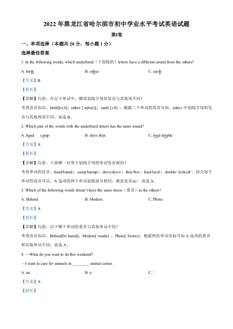 当前位置: 首页初中资源中考真题正文 2022年黑龙江省哈尔滨市中考英语真题(含答案)_共24页 中考真题 2 周前 0 0 15 以上为部分内容预览,如需源文档请登录您的会员账号进行下载! 声明:本站所有文章,如无特殊说明或标注,均为本站原创发布。任何个人或组织,在未征得本站同意时,禁止复制、盗用、采集、发布本站内容到任何网站、书籍等各类媒体平台。如若本站内容侵犯了原著者的合法权益,可联系我们进行处理。 尚学资源永久会员 打赏 收藏 海报 链接