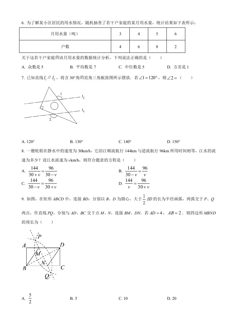 2022年湖北省恩施州中考数学真题(空白卷)_共8页