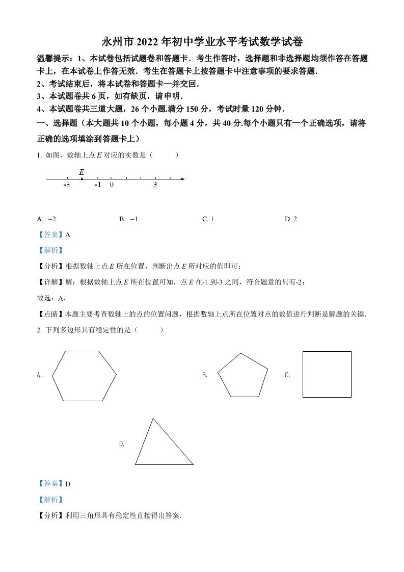 2022年湖南省永州市中考数学真题(含答案)_共21页