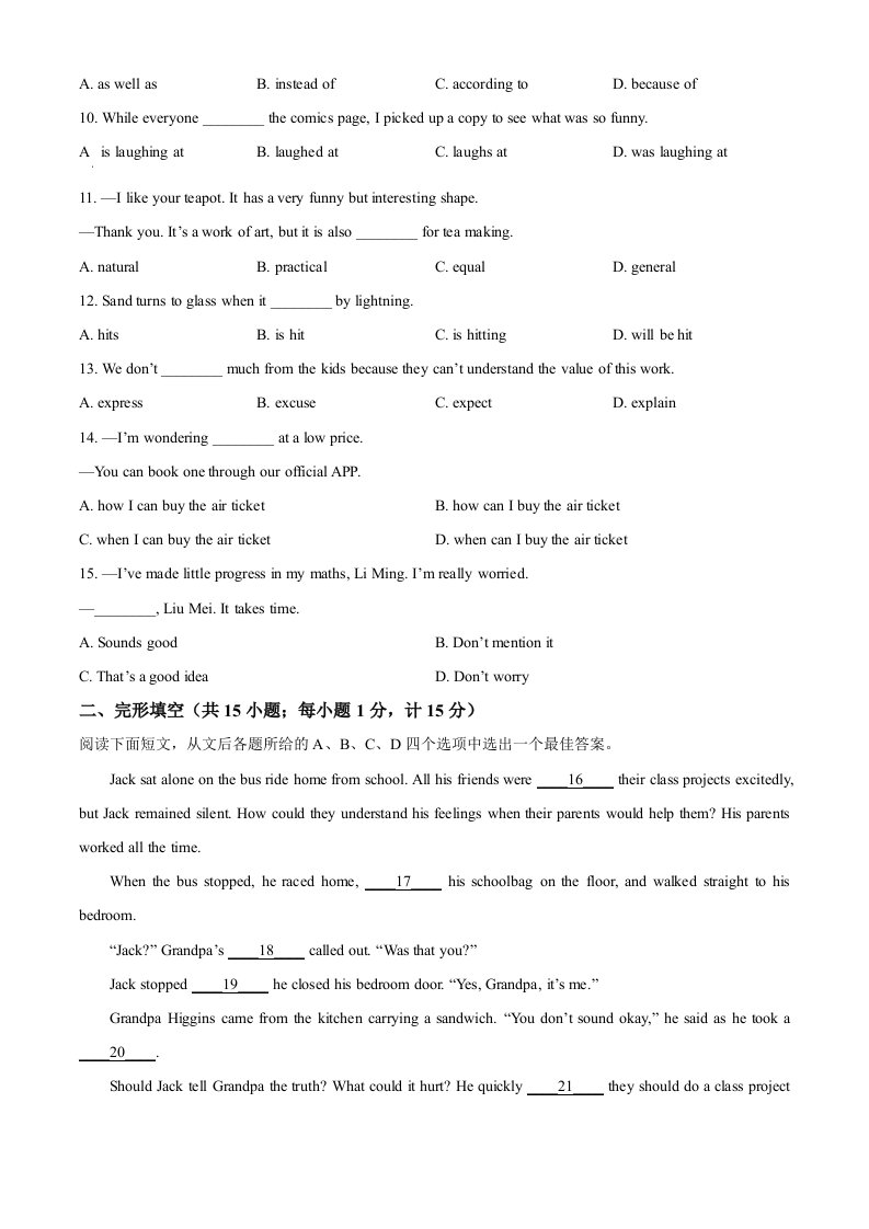 2023年江苏省扬州市中考英语真题(空白卷)_共14页
