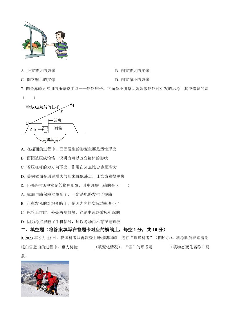 2023年内蒙古赤峰市中考理综物理试题(空白卷)_共8页