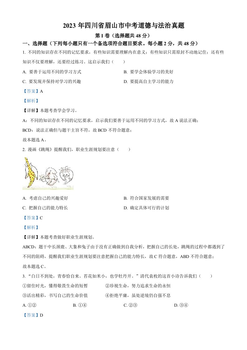 当前位置: 首页初中资源中考真题正文 2023年四川省眉山市中考道德与法治真题(含答案)(1)_共13页 中考真题 2 周前 0 0 10 以上为部分内容预览,如需源文档请登录您的会员账号进行下载! 声明:本站所有文章,如无特殊说明或标注,均为本站原创发布。任何个人或组织,在未征得本站同意时,禁止复制、盗用、采集、发布本站内容到任何网站、书籍等各类媒体平台。如若本站内容侵犯了原著者的合法权益,可联系我们进行处理。 尚学资源永久会员 打赏 收藏 海报 链接