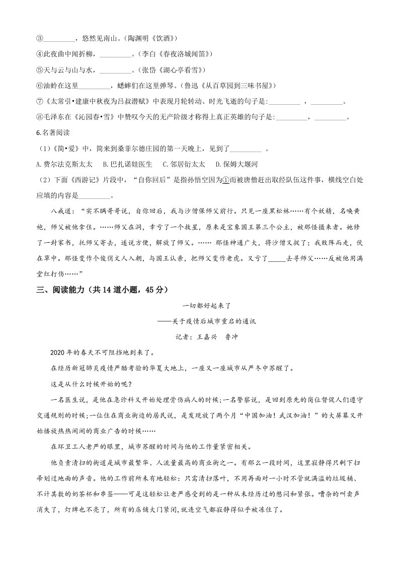 当前位置: 首页初中资源中考真题正文 贵州省贵阳市2020年中考语文试题(空白卷)_共10页 中考真题 2 周前 0 0 5 以上为部分内容预览,如需源文档请登录您的会员账号进行下载! 声明:本站所有文章,如无特殊说明或标注,均为本站原创发布。任何个人或组织,在未征得本站同意时,禁止复制、盗用、采集、发布本站内容到任何网站、书籍等各类媒体平台。如若本站内容侵犯了原著者的合法权益,可联系我们进行处理。 尚学资源永久会员 打赏 收藏 海报 链接