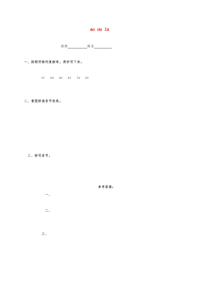 一年级语文上册10.aoouiu练习4(部编版)_共2页