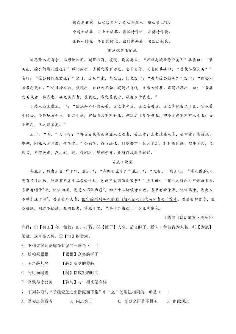 湖北省荆州市2021年中考语文试题(空白卷)_共9页