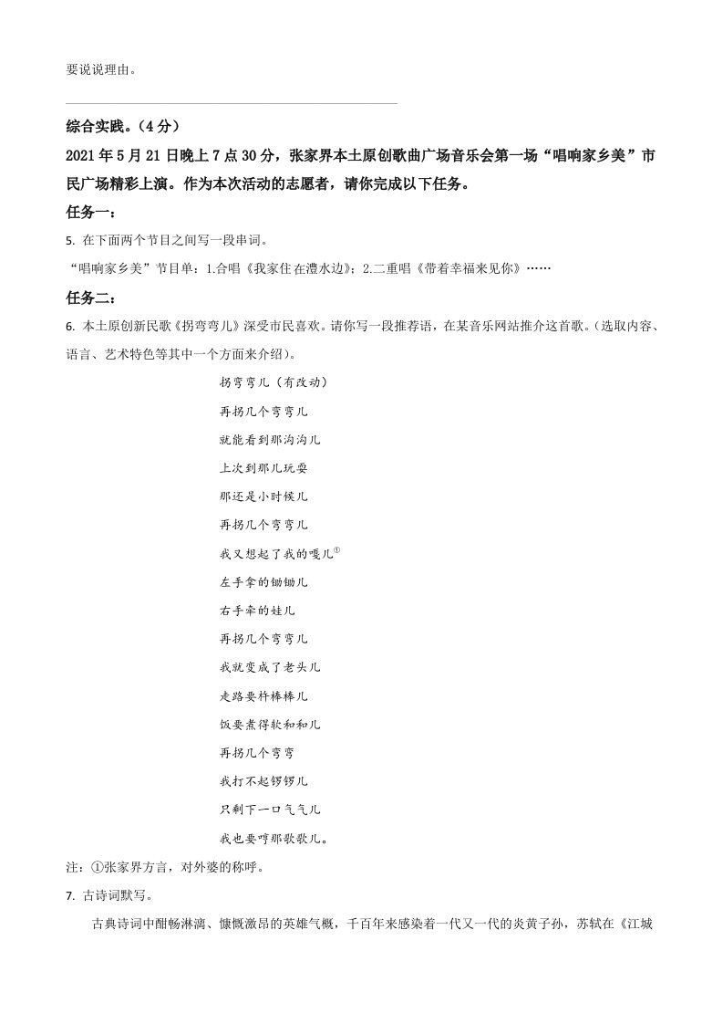 湖南省张家界市2021年中考语文试题(空白卷)_共9页