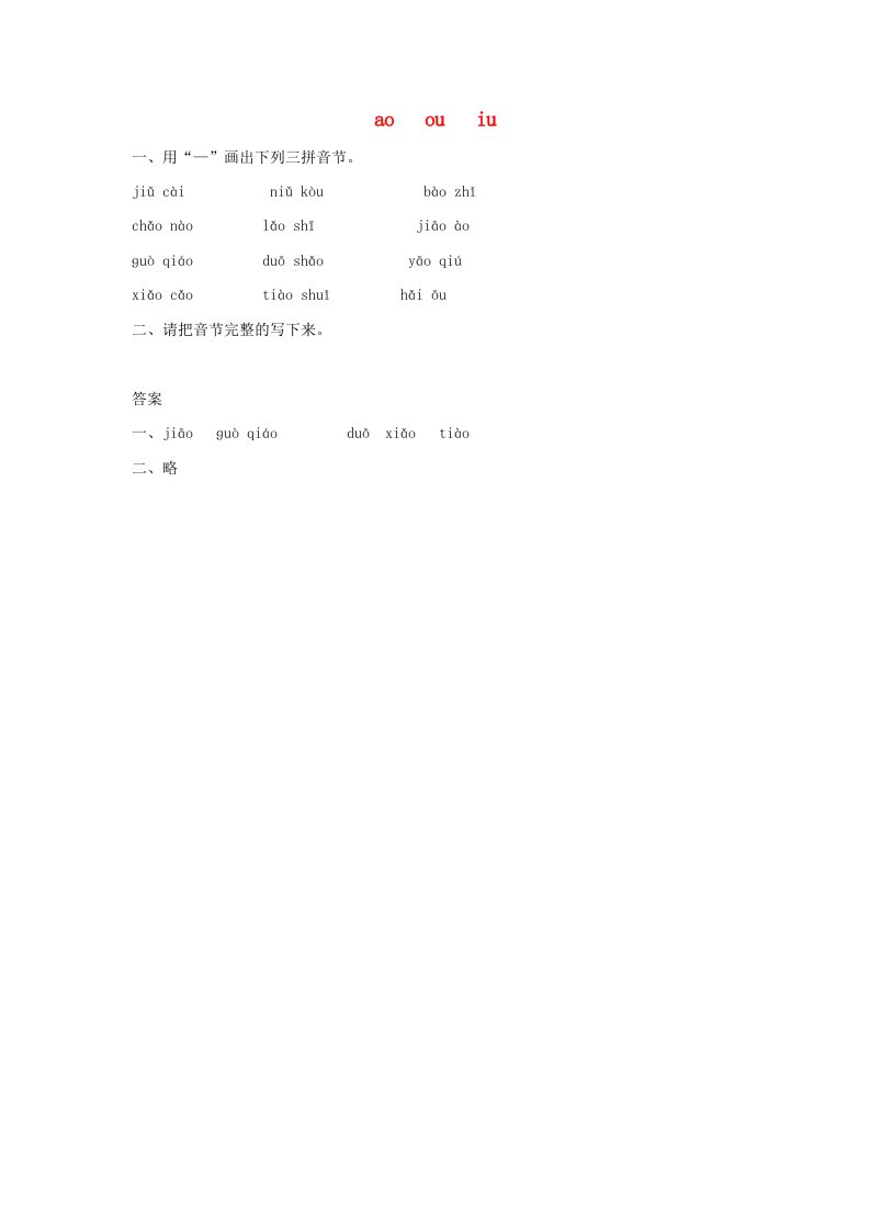 一年级语文上册10.aoouiu练习2(部编版)_共1页