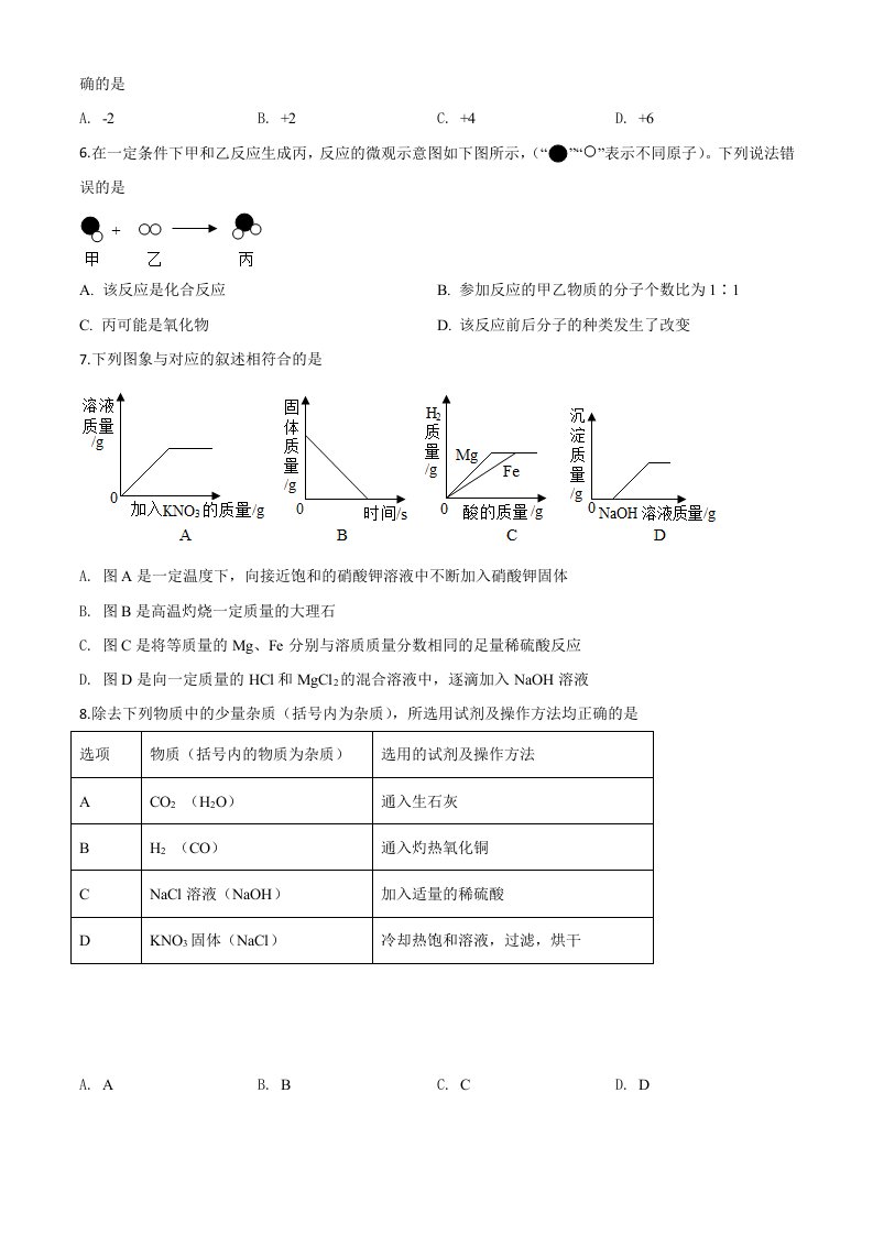 贵州省黔东南州2020年中考化学试题(空白卷)_共7页