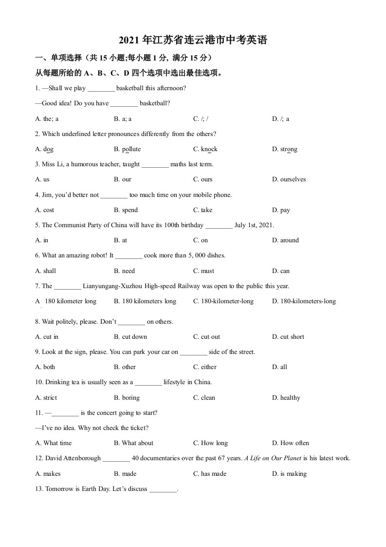 当前位置: 首页初中资源中考真题正文 江苏省连云港市2021年中考英语试题(空白卷)_共11页 中考真题 2 周前 0 0 10 以上为部分内容预览,如需源文档请登录您的会员账号进行下载! 声明:本站所有文章,如无特殊说明或标注,均为本站原创发布。任何个人或组织,在未征得本站同意时,禁止复制、盗用、采集、发布本站内容到任何网站、书籍等各类媒体平台。如若本站内容侵犯了原著者的合法权益,可联系我们进行处理。 尚学资源永久会员 打赏 收藏 海报 链接
