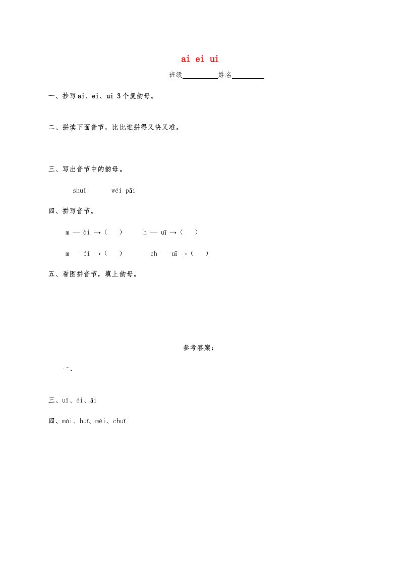 一年级语文上册9.aieiui练习4(部编版)_共2页