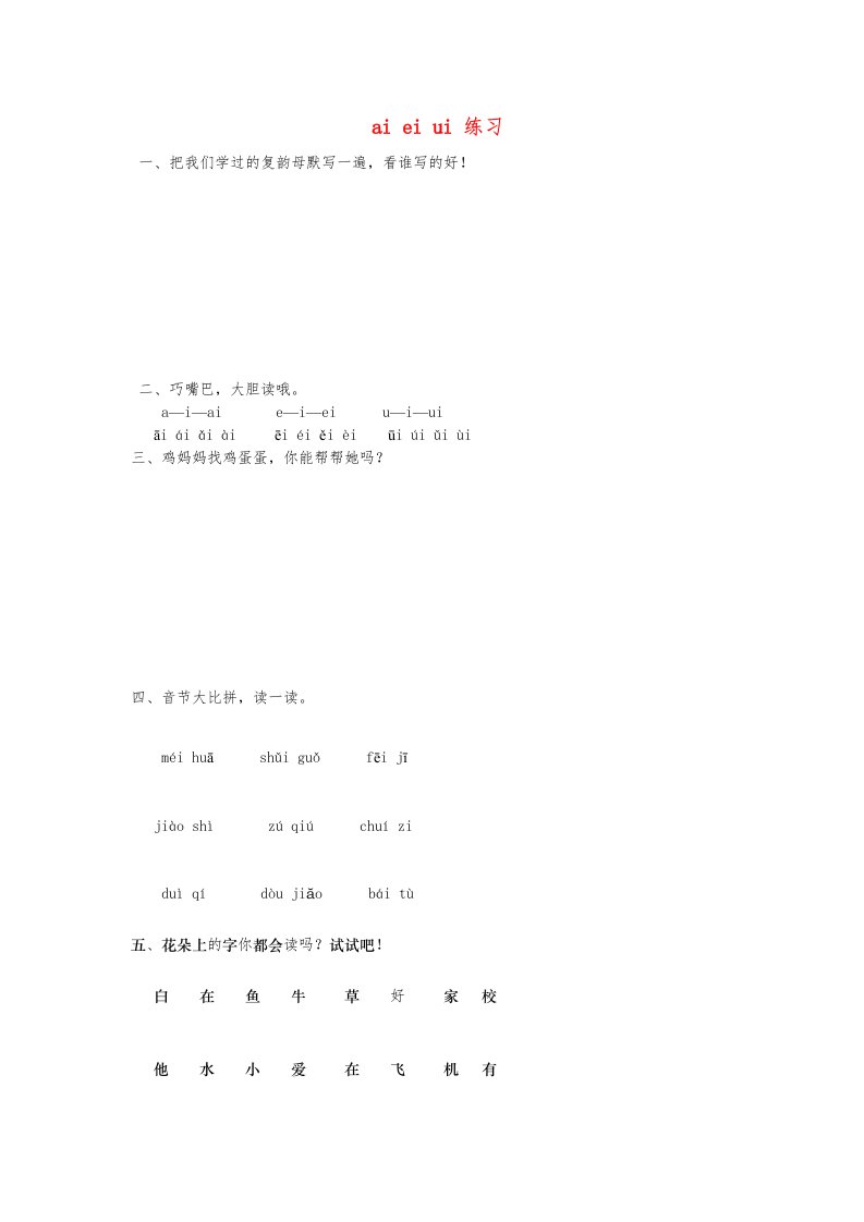 当前位置: 首页小学资源小学一年级正文 一年级语文上册9.aieiui练习2(部编版)_共3页 小学一年级 2 周前 0 0 5 以上为部分内容预览,如需源文档请登录您的会员账号进行下载! 声明:本站所有文章,如无特殊说明或标注,均为本站原创发布。任何个人或组织,在未征得本站同意时,禁止复制、盗用、采集、发布本站内容到任何网站、书籍等各类媒体平台。如若本站内容侵犯了原著者的合法权益,可联系我们进行处理。 尚学资源永久会员 打赏 收藏 海报 链接