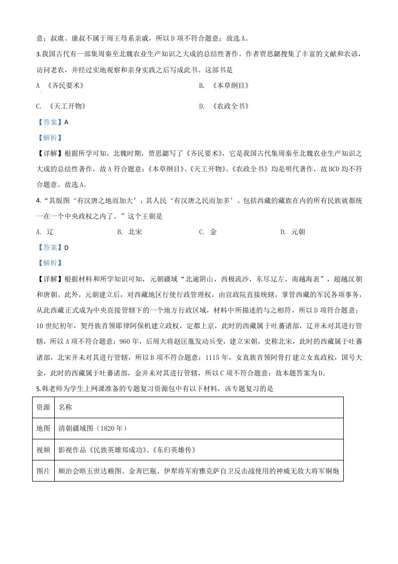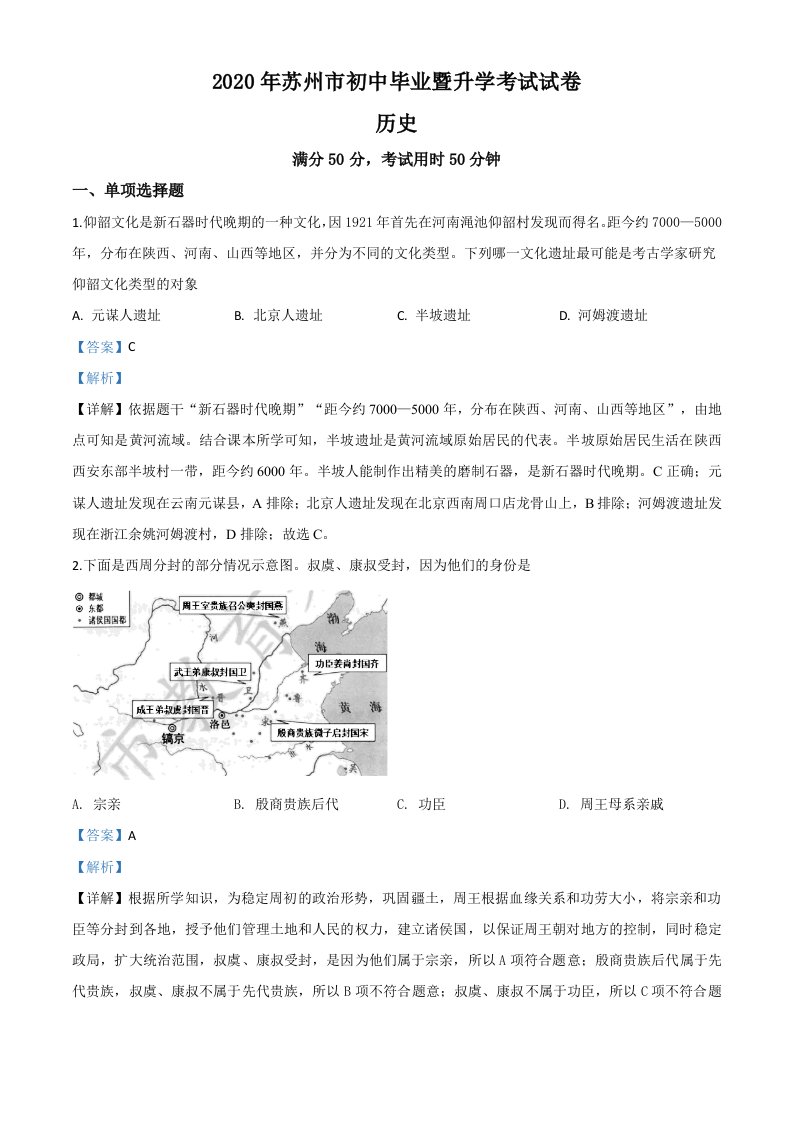 江苏省苏州市2020年中考历史试题(含答案)_共16页