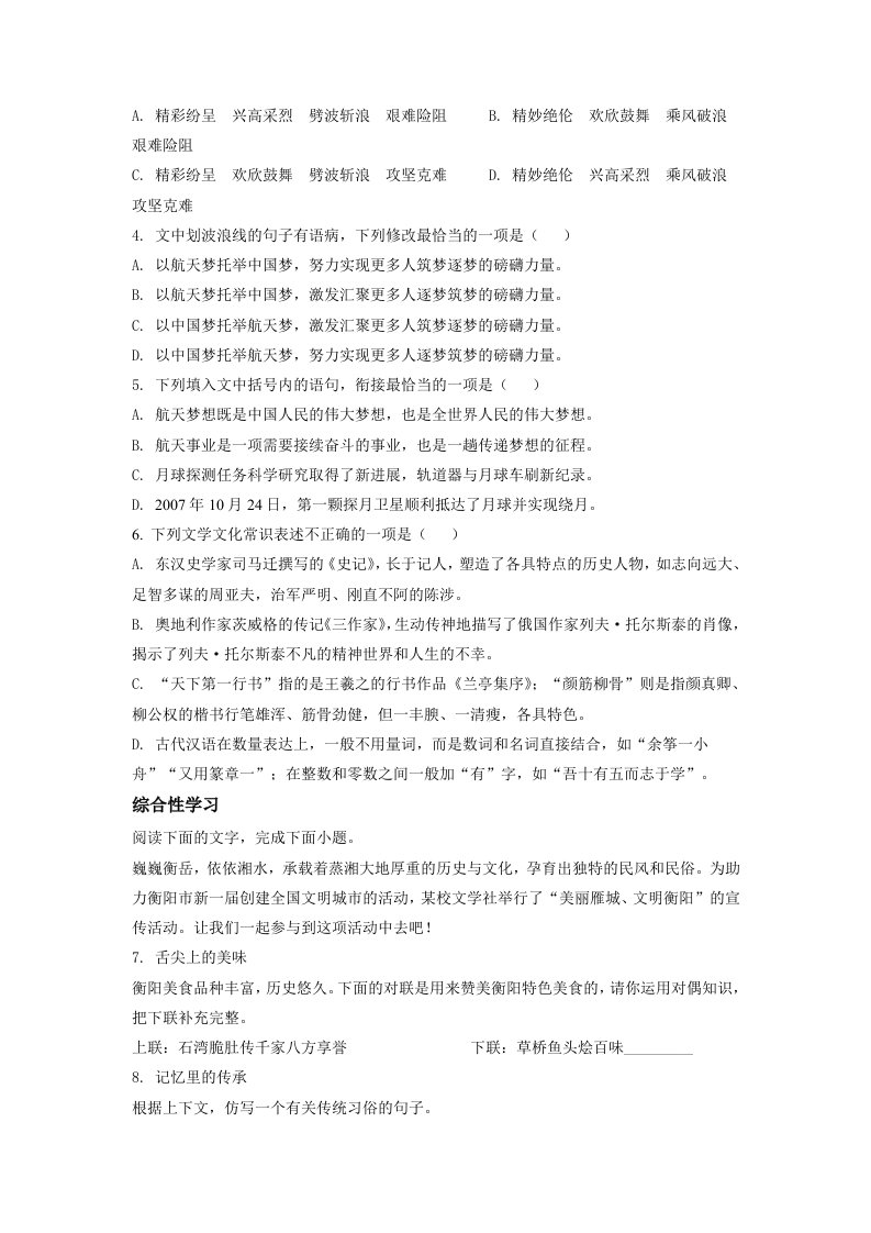当前位置: 首页初中资源中考真题正文 2022年湖南省衡阳市中考语文真题(空白卷)_共9页 中考真题 2 周前 0 0 5 以上为部分内容预览,如需源文档请登录您的会员账号进行下载! 声明:本站所有文章,如无特殊说明或标注,均为本站原创发布。任何个人或组织,在未征得本站同意时,禁止复制、盗用、采集、发布本站内容到任何网站、书籍等各类媒体平台。如若本站内容侵犯了原著者的合法权益,可联系我们进行处理。 尚学资源永久会员 打赏 收藏 海报 链接