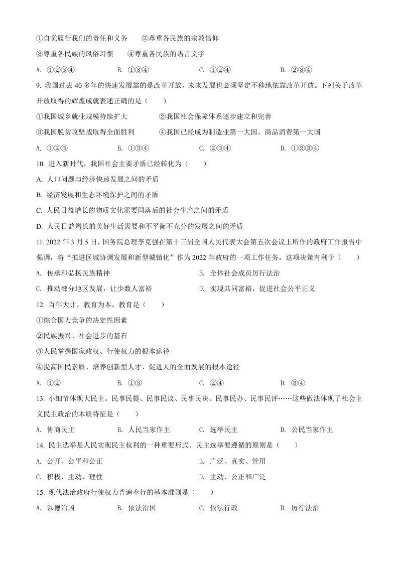当前位置: 首页初中资源中考真题正文 2022年辽宁省抚顺市、本溪市、铁岭市、葫芦岛市中考道德与法治真题(空白卷)_共6页 中考真题 2 周前 0 0 5 以上为部分内容预览,如需源文档请登录您的会员账号进行下载! 声明:本站所有文章,如无特殊说明或标注,均为本站原创发布。任何个人或组织,在未征得本站同意时,禁止复制、盗用、采集、发布本站内容到任何网站、书籍等各类媒体平台。如若本站内容侵犯了原著者的合法权益,可联系我们进行处理。 尚学资源永久会员 打赏 收藏 海报 链接