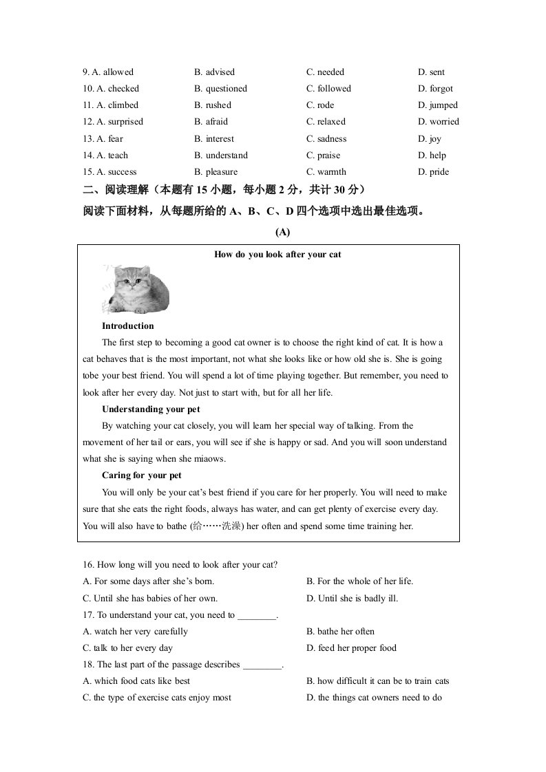 2022年浙江省宁波市中考英语真题(空白卷)_共9页