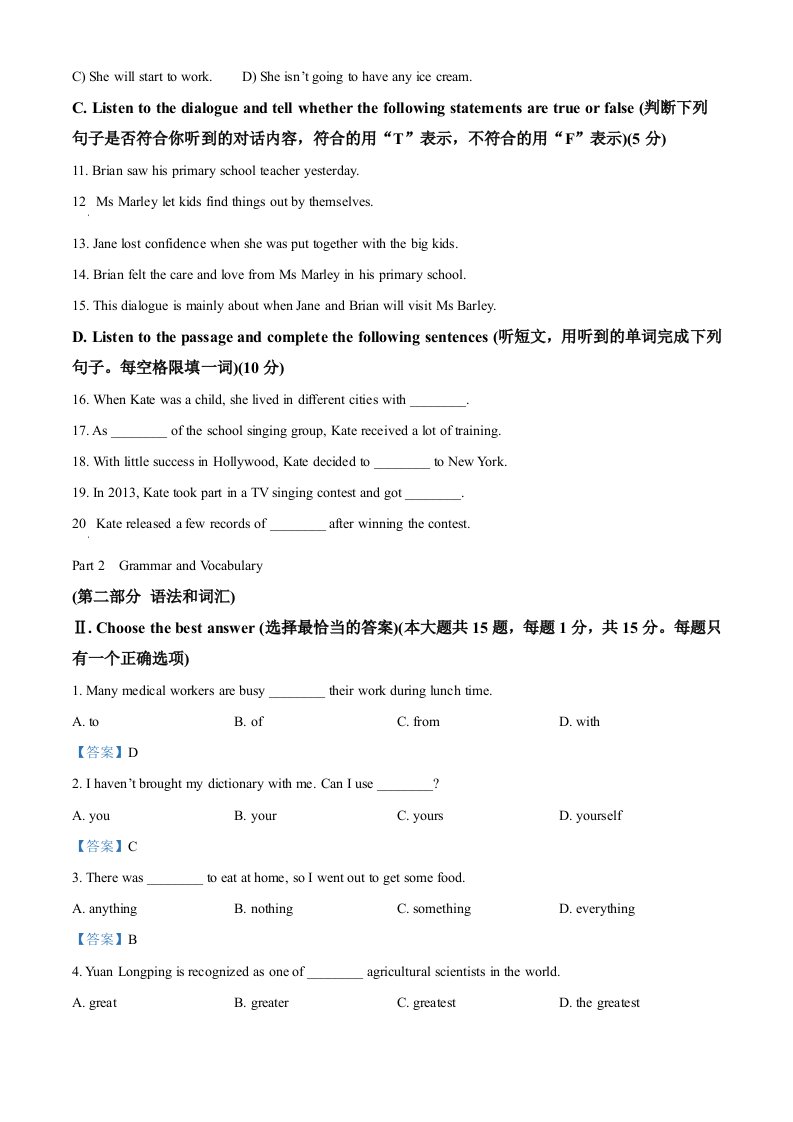 当前位置: 首页初中资源中考真题正文 上海市2021年中考英语试题_共14页 中考真题 2 周前 0 0 10 以上为部分内容预览,如需源文档请登录您的会员账号进行下载! 声明:本站所有文章,如无特殊说明或标注,均为本站原创发布。任何个人或组织,在未征得本站同意时,禁止复制、盗用、采集、发布本站内容到任何网站、书籍等各类媒体平台。如若本站内容侵犯了原著者的合法权益,可联系我们进行处理。 尚学资源永久会员 打赏 收藏 海报 链接