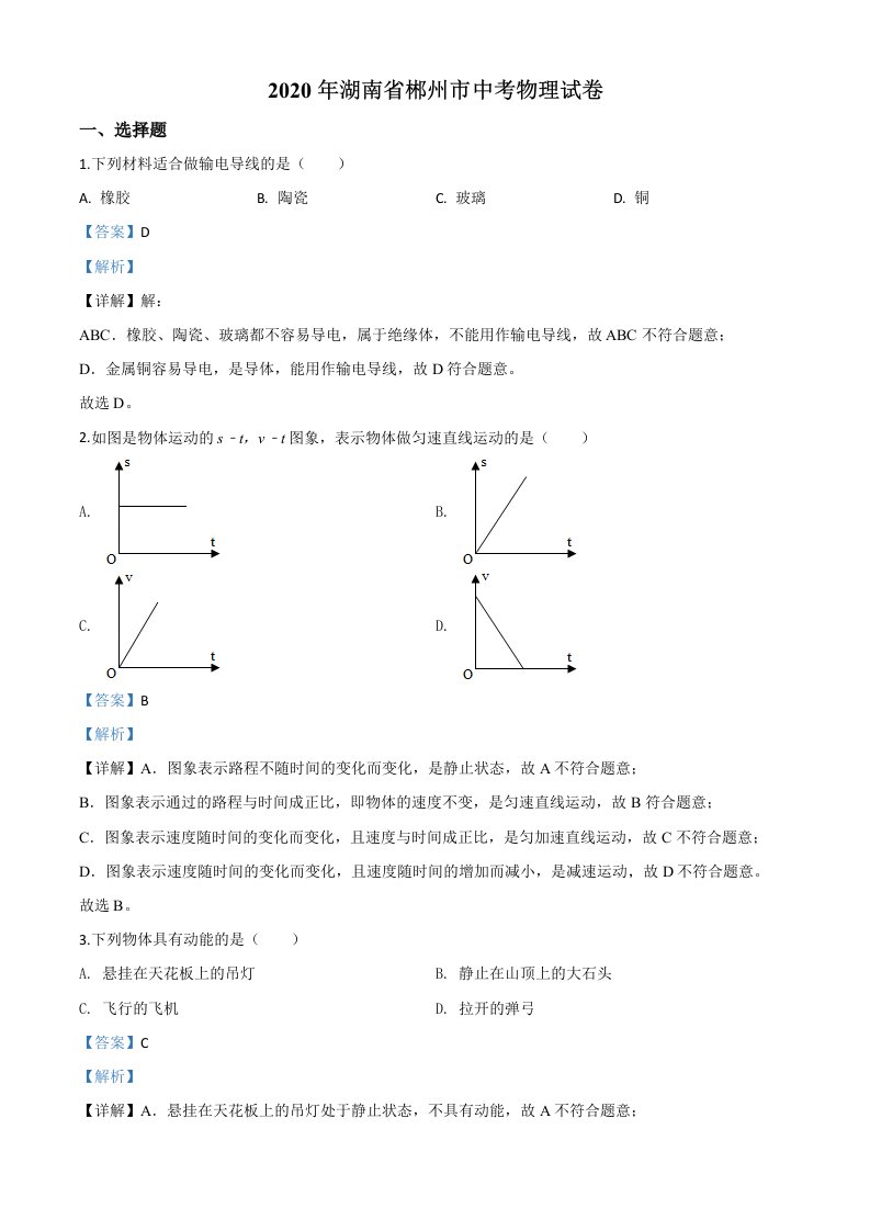 2020年湖南省郴州市中考物理试题(含答案)_共22页