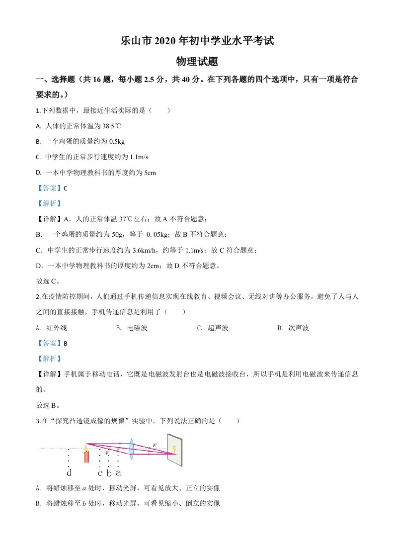 2020年四川省乐山市中考物理试题(含答案)_共18页