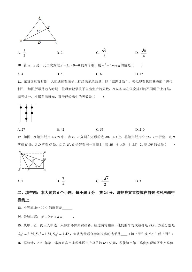 四川省宜宾市2021年中考数学真题(空白卷)_共6页