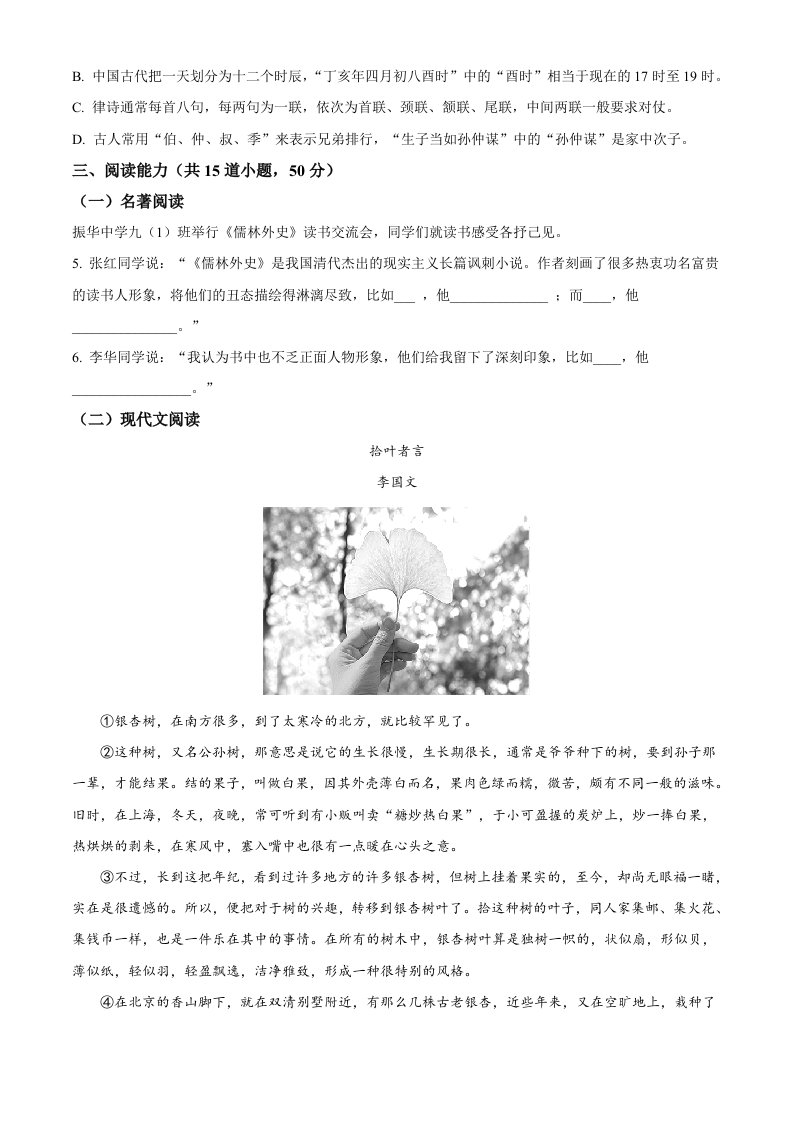 2022年贵州省安顺市中考语文试题(空白卷)_共9页